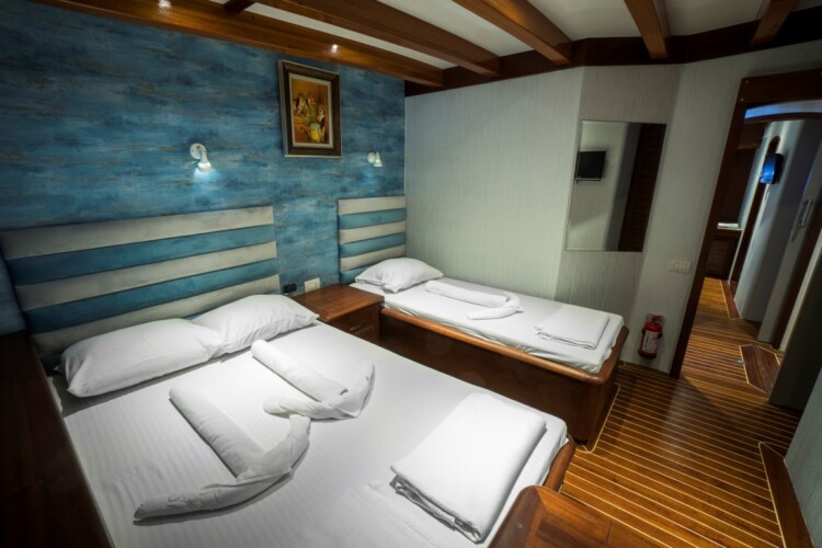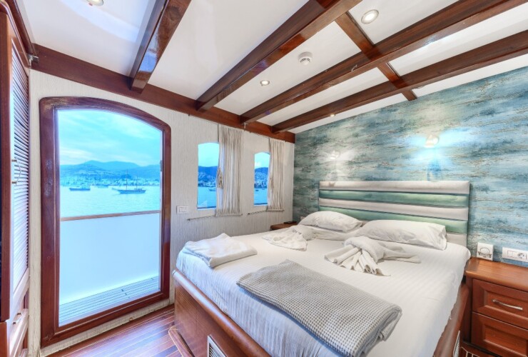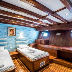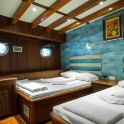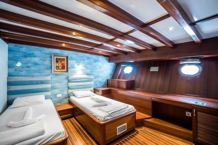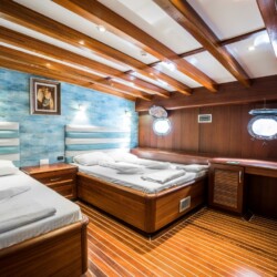 Extensively refitted in 2020, Love Boat Gulet offers a modern yet warm atmosphere, blending contemporary design with the charm of traditional Turkish craftsmanship. The yacht features 16 custom-designed cabins, accommodating up to 36 guests in total comfort. Each cabin is thoughtfully equipped with air conditioning and private en-suite bathrooms, ensuring a relaxing and convenient stay throughout your journey.